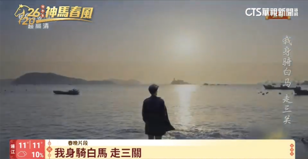 春节是中国人亲情最浓最盛的节日,中时新闻网等岛内媒体刊文称“春晚唱响两岸一家亲”。华视新闻的报道注意到,伴随着《身骑白马》的背景音乐,台湾大稻埕等地标出现在春晚短片中,引发岛内网友热议。